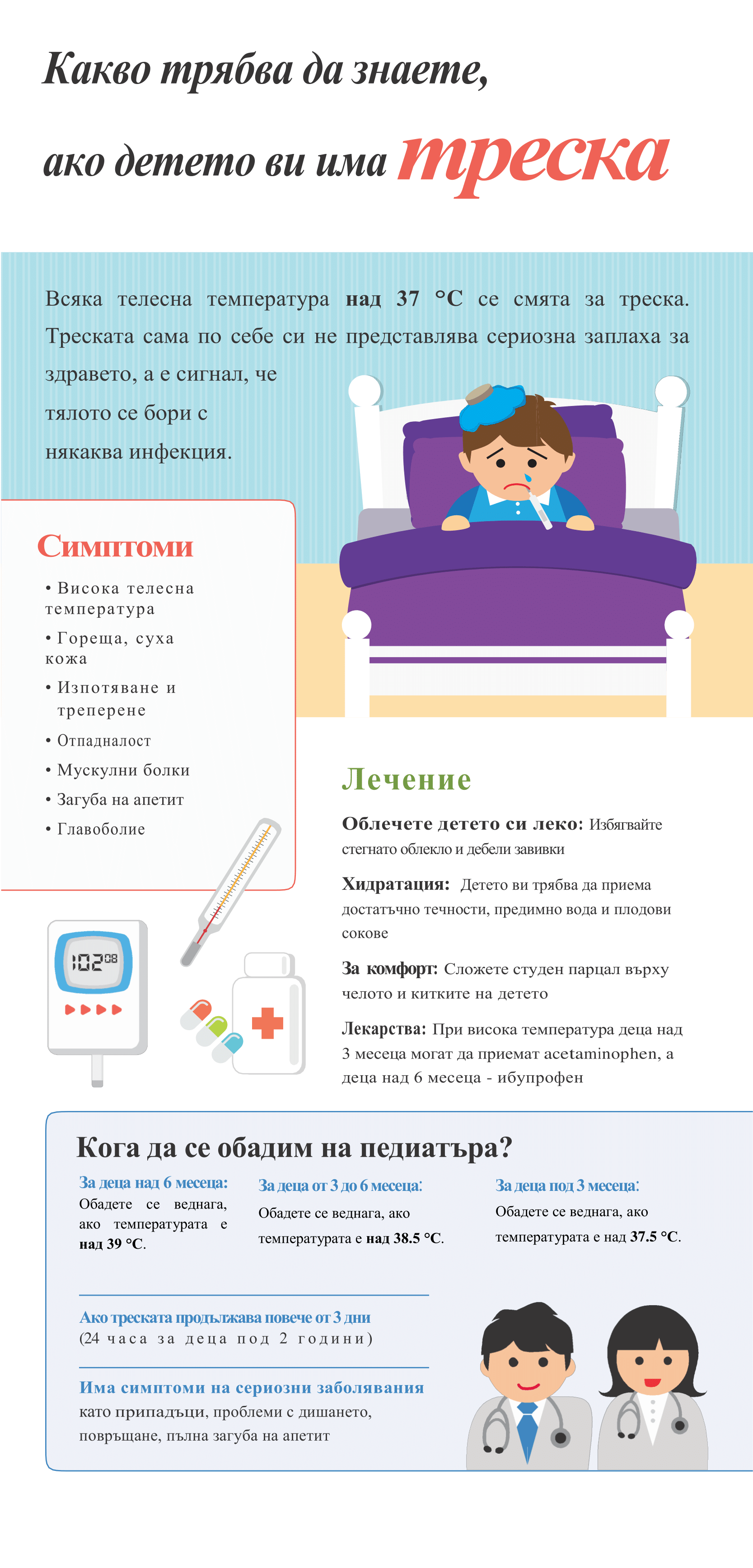 Какво трябва да знаем, ако детето ни има треска? Публикуван на: 5 декември 2016 1 от 2 Тази инфографика ви представя най-важната информация за треската при децата. Натиснете върху изображението, за да видите цял размер.