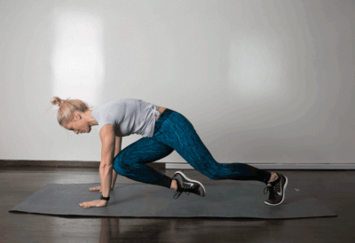 - Докато връщате десния крак към началното положение, започнете да надигате левия.